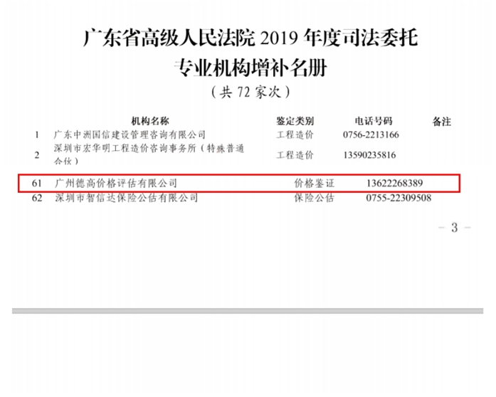 我公司入选广东省高级人民法院司法委托专业机构名册。